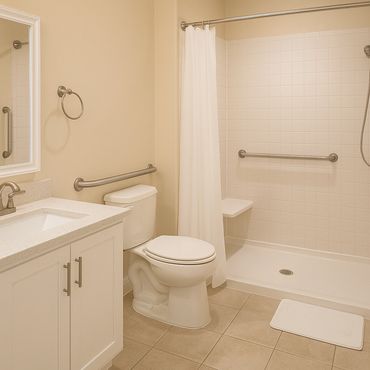 Our shared bathrooms are bright, modern, and meticulously maintained to ensure a clean and comfortable experience for every resident. Featuring accessible layouts with grab bars, spacious walk-in showers, and non-slip flooring, each bathroom is designed with safety and ease of use in mind. We prioritize hygiene and convenience so residents can feel confident and cared for, knowing their personal needs are met in a respectful, well-appointed environment.